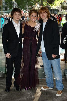 Die Stars des Films Daniel Radcliff (L), Emma Watson und Rupert Grint (R) bei der UK-Premiere von "Harry Potter And The Prisoner of Azkaban" in London.